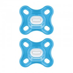 Para recién nacidos. Escudo suave. Asa para un ajuste fácil a un broche. Tetina extra pequeña que favorece el comportamiento de succión natural. Silicona 100%.